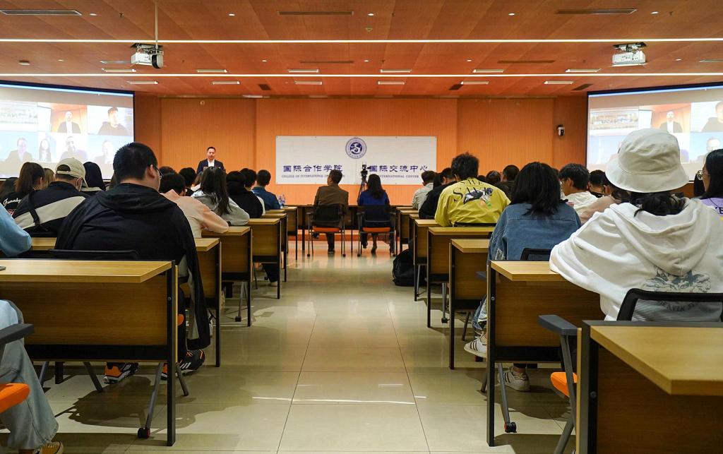 suncitygroup太阳新城国际合作学院国际教育系系主任徐社教教授用标准英式英语向同学们分享了他工作中的体会。他亲身感受到,在三年的中英班课程教授中,同学们进步飞速,从最初羞于表达到现在可以轻松用英语进行交流。他说,国际教育系所有中方老师都有海外学习和工作经验,业务精通,年轻有为。系里的外籍教师语言教学经验丰富。希望同学们珍惜优质学习资源,不负韶华,早日圆梦。